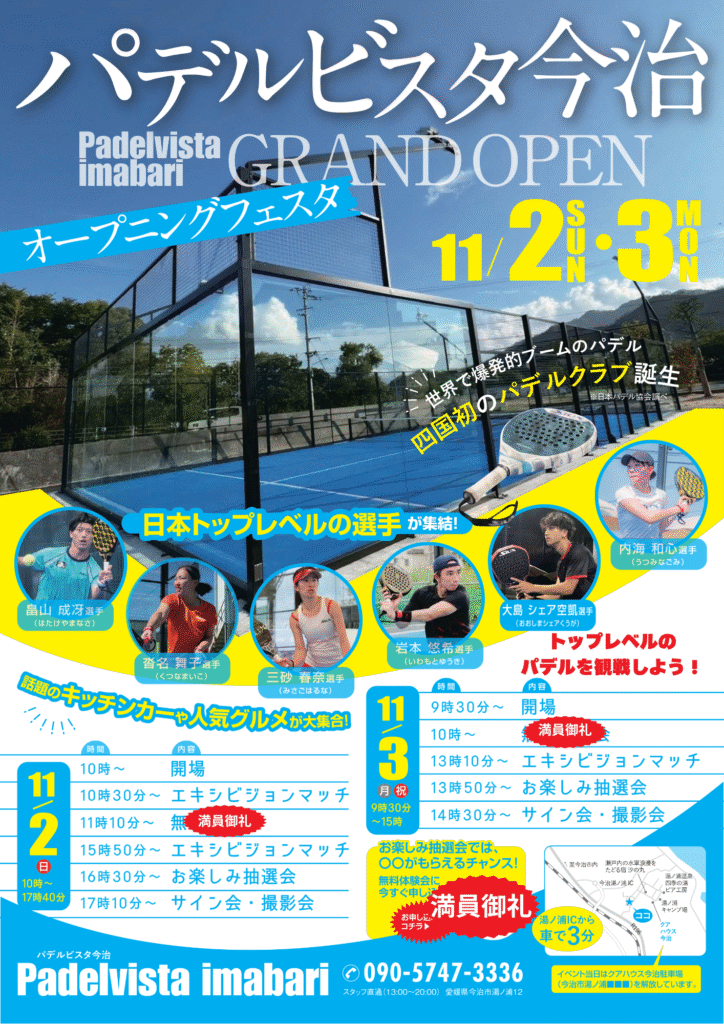 【満員御礼】Padelvista imabari 11月2日・3日パデル特別無料体験レッスン(オープニングイベント)