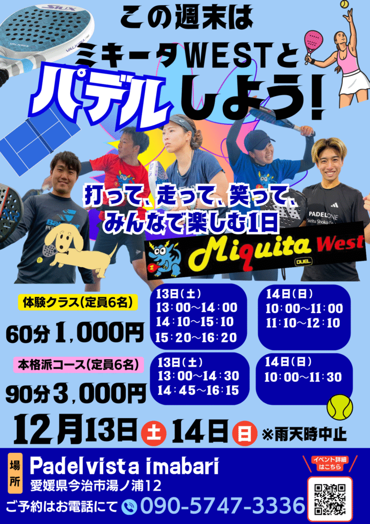 Padelvista imabari では、以下の予約電話番号にてコートのご予約を承っております。