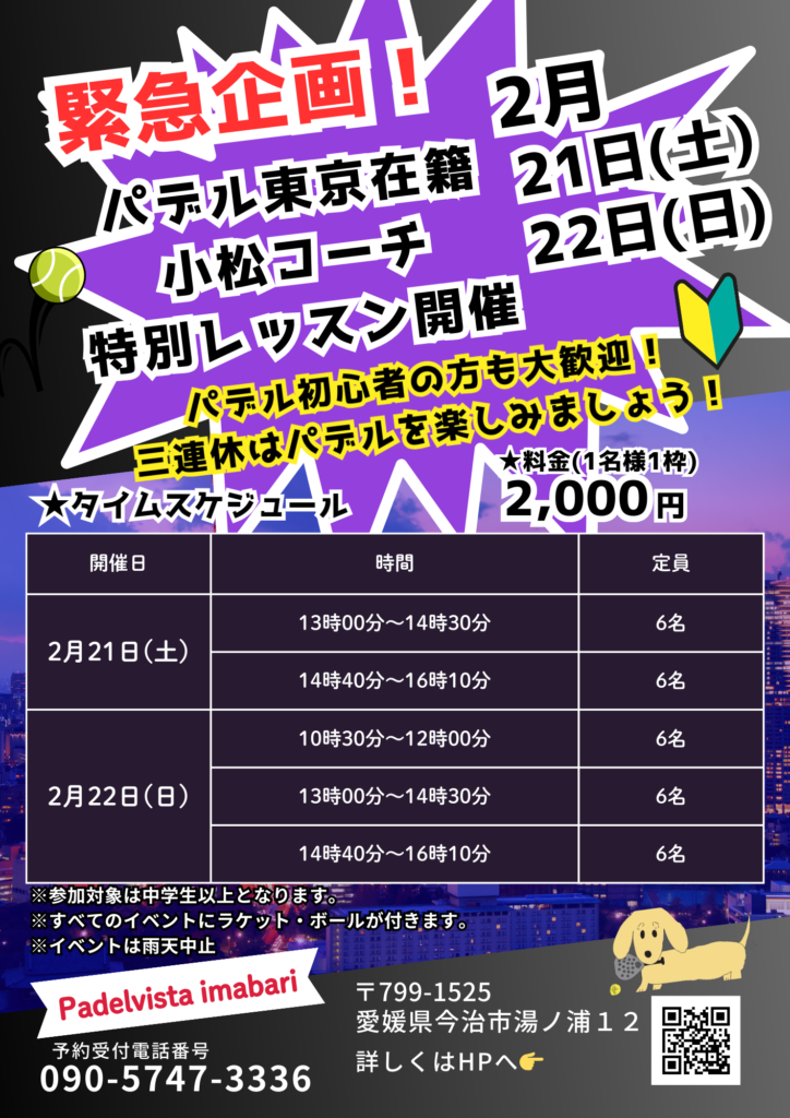 ■【緊急】パデル東京在籍 小松コーチ特別レッスン開催